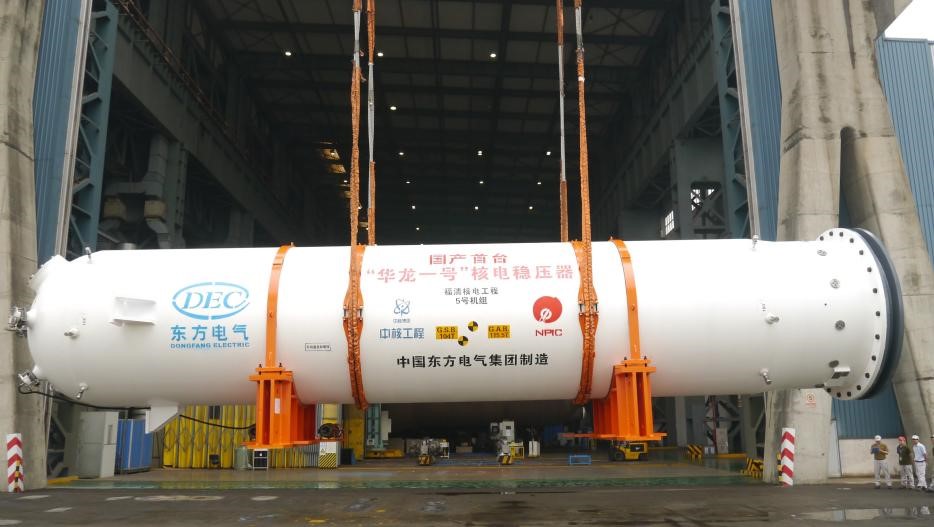 东方电气集团为华龙一号全球首堆提供了常规岛汽轮机、发电机、汽水分离再热器、凝汽器,核岛蒸汽发生器、稳压器、PRS换热器、安注箱和硼注箱等关键设备