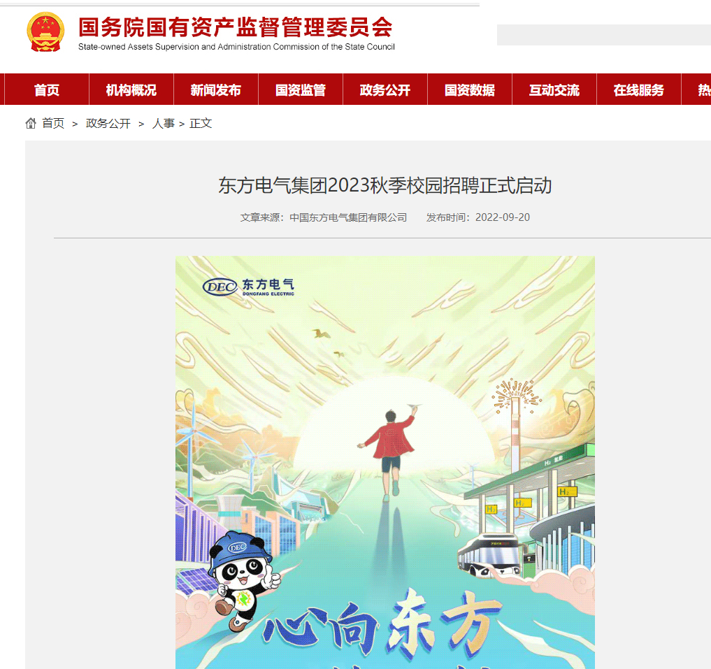 [国资委网站]东方电气集团2023秋季校园招聘正式启动