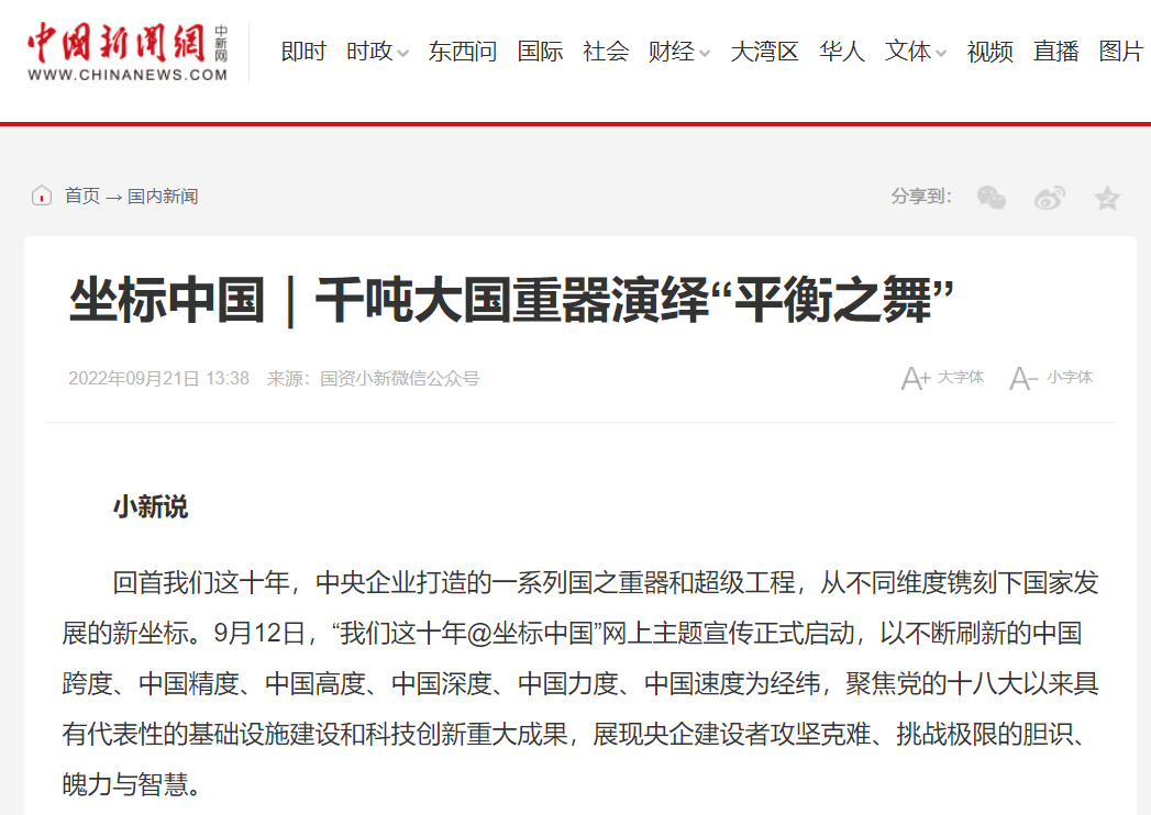 [中国新闻网]坐标中国|千吨大国重器演绎“平衡之舞”