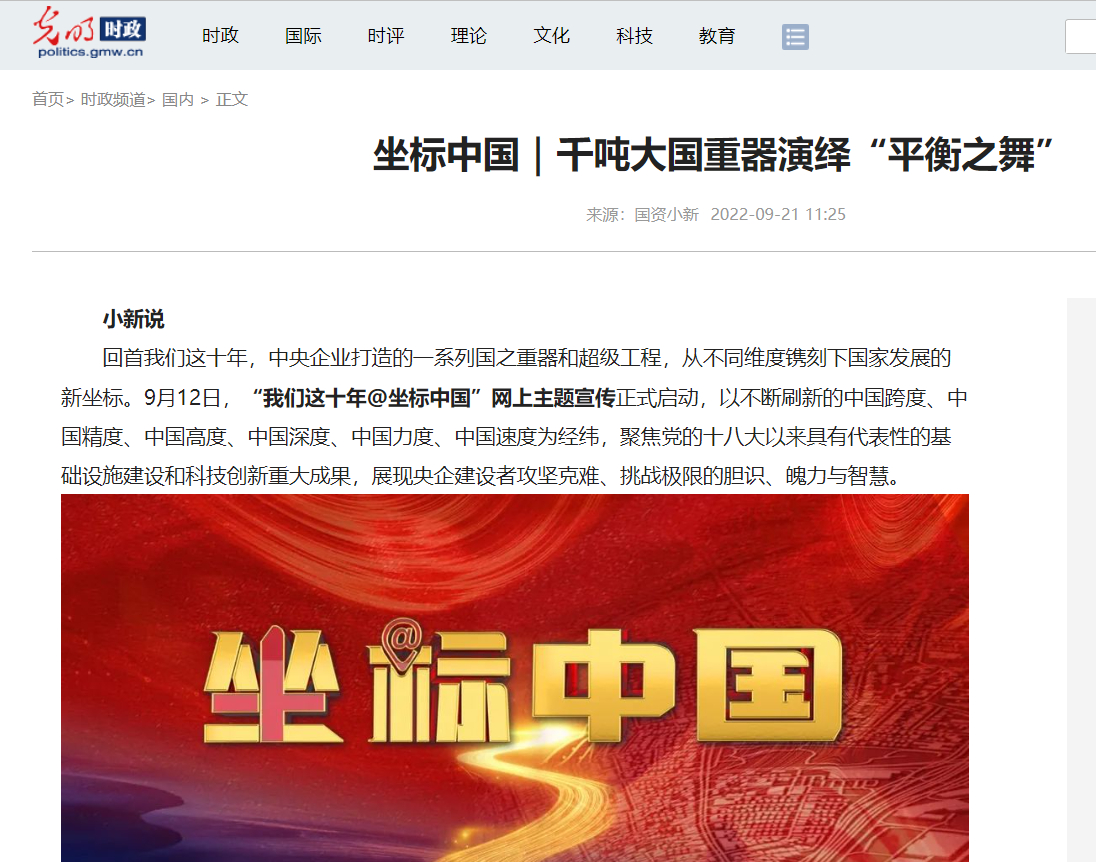 [光明网]坐标中国|千吨大国重器演绎“平衡之舞”