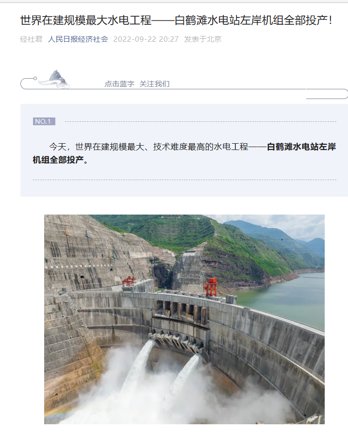 [人民日报]世界在建规模最大水电工程——白鹤滩水电站左岸机组全部投产!
