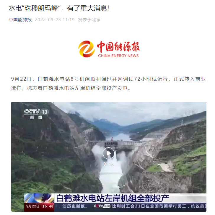 [中国能源报]水电“珠穆朗玛峰”,有了重大消息!