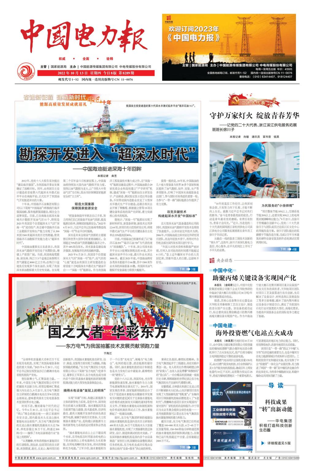 面向未来,东方电气集团将坚决融入能源转型发展大局,充分发挥抽水蓄能装备研制优势,当好抽水蓄能开发建设的“主力军”,全力构建合作共赢的“生态圈”,为推动抽水蓄能高质量发展,服务新型电力系统建设,实现“双碳”目标作出积极贡献。