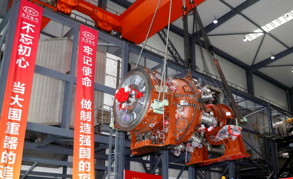 四川省副省长罗强宣布“国内首台自主研制F级50兆瓦重型燃气轮机完工发运”。