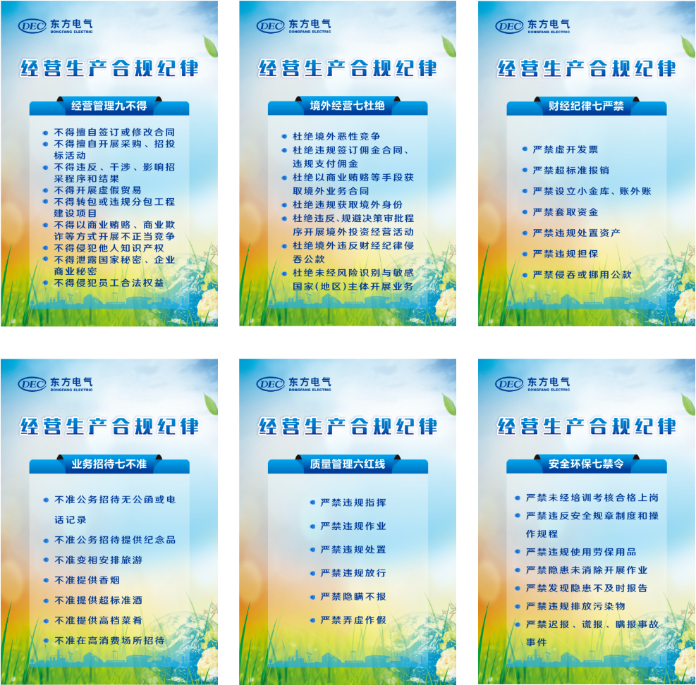会议发布了合规理念、合规纪律。合规理念是全体东方电气人必须共同遵循的准则,也是公司向监管机构、投资者、社会公众作出的郑重承诺。合规纪律是对重点经营业务领域工作提出的禁止性规定,旨在帮助全体员工理解掌握合规要求,严守合规底线。会议强调,各单位要抓好宣贯,真正让合规理念和纪律入脑入心见于行。一是强化合规管理顶层推动,各单位主要领导持续落实好第一责任人职责,优化完善合规管理议事协调机构设置,形成“以上率下、上下联动”的浓厚合规管理氛围。二是完善合规管理运行机制,以“三张清单”为基础,推动合规管理落地见效。三是扎实开展合规文化建设专项行动,强化责任落实,确保通过专项行动进一步筑牢合规管理思想防线。会议举办了首次合规讲堂,集团总法律顾问兼首席合规官作首场专题讲座。