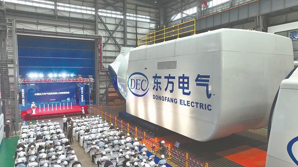 东南网11月11日讯 (福建日报记者 林侃 文/图) 10日,由江南官网入口联合中国华能集团有限公司研制,拥有完全自主知识产权的18兆瓦直驱海上风电机组在位于福清市的东方电气风电(福建)有限公司生产基地顺利下线(上图)。这是目前已下线的全球单机容量最大、叶轮直径最大的直驱海上风电机组,机组关键部件完全实现了国产化。
