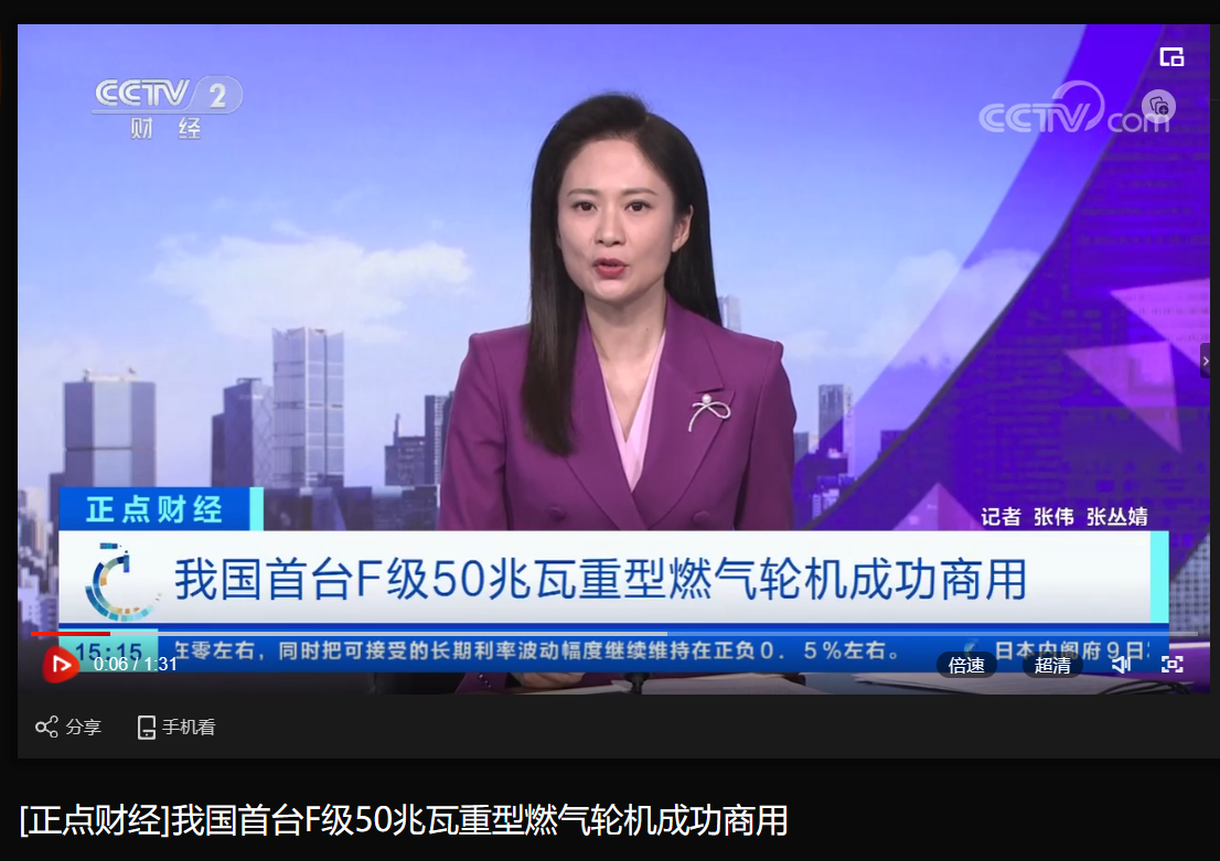 [央视正点财经]我国首台F级50兆瓦重型燃气轮机成功商用