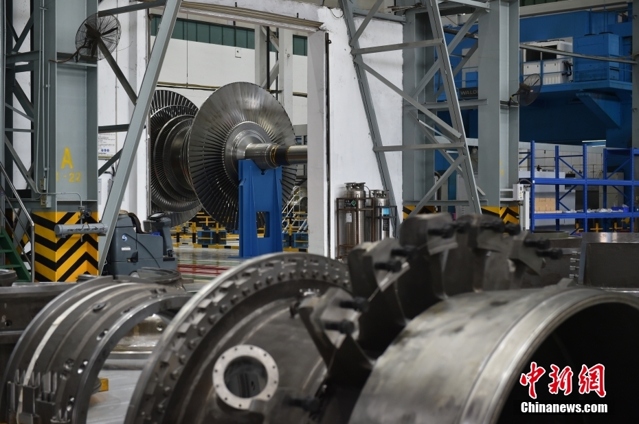东方汽轮机的重型二分厂是公司最大的重型分厂,主要承担燃气轮机、核电汽轮机、大型火电大部件加工及总装,全公司所有大型转子加工、装配及高速动平衡试验等工作。图为重型二分厂内景。