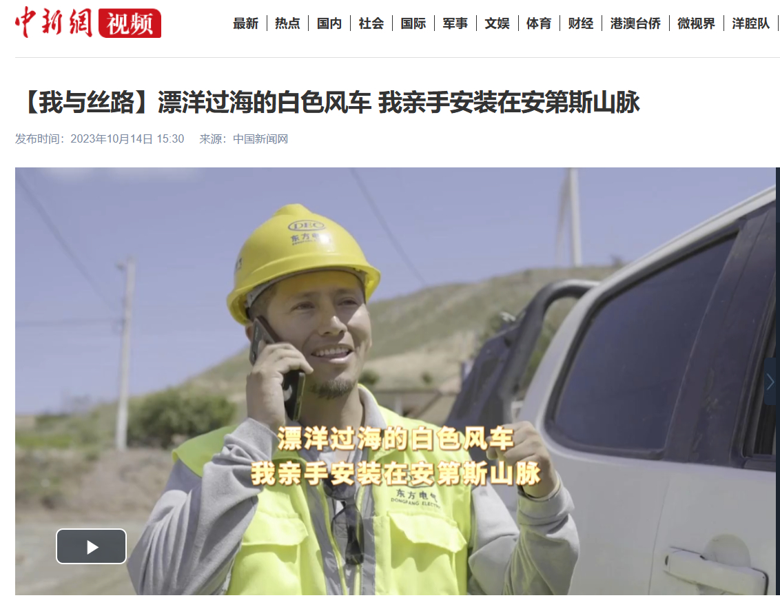 “‘一带一路’是幸福之路。”伫立在安第斯山脉的白色风车,是厄瓜多尔目前为止最大的风电场,对于受雇于东方电气的法布里西奥来说,风电场不仅为厄瓜多尔能源多元化作出贡献,也改变了他的生活。
