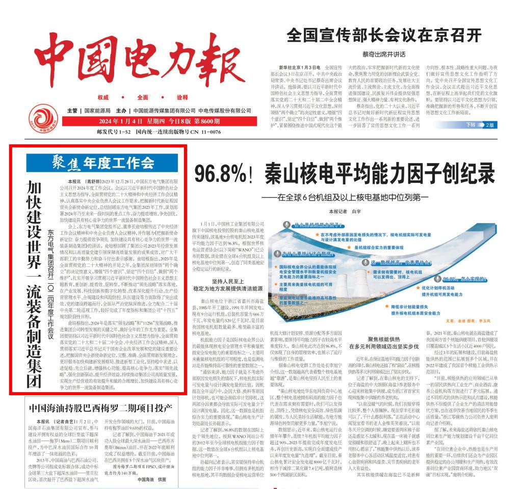 [中国电力报]加快建设世界一流装备制造集团 东方电气集团召开二〇二四年度工作会议