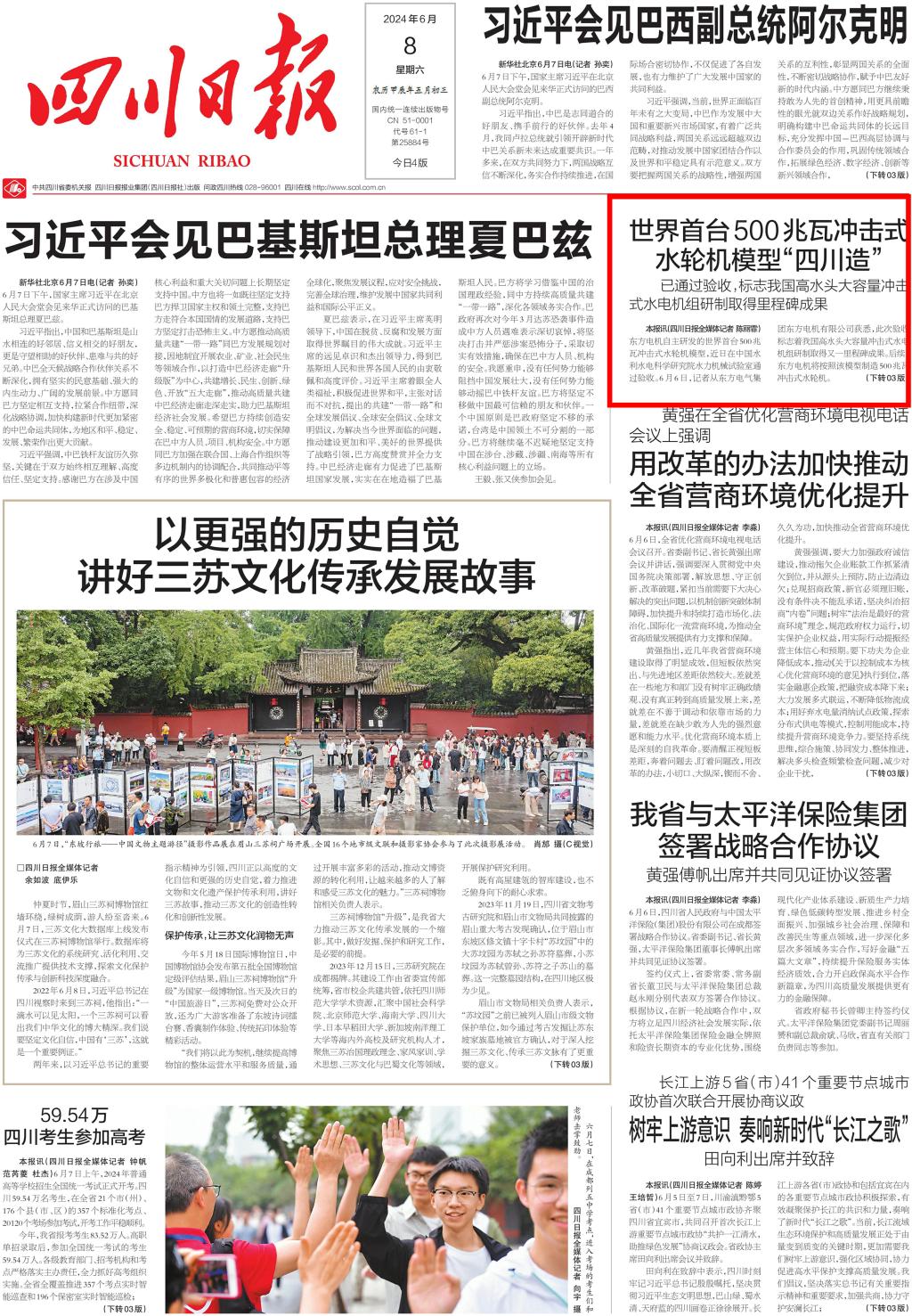 [四川日报]世界首台500兆瓦冲击式水轮机模型“四川造”