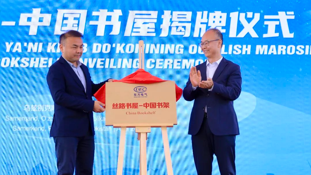 活动中,乌米德·马马达米诺夫和袁明刚共同为东方电气“丝路书屋——中国书架”揭牌。此次,东方电气共捐赠150余册图书内容涵盖中国经济社会发展、历史文化、文学艺术、科技发展等方面,为当地员工深入了解中国搭建窗口,进一步构筑两国文化交流之桥。