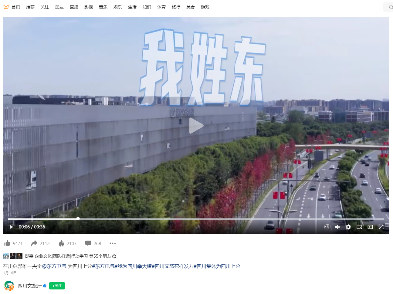 [四川文旅厅]在川总部唯一央企@东方电气 为四川上分
