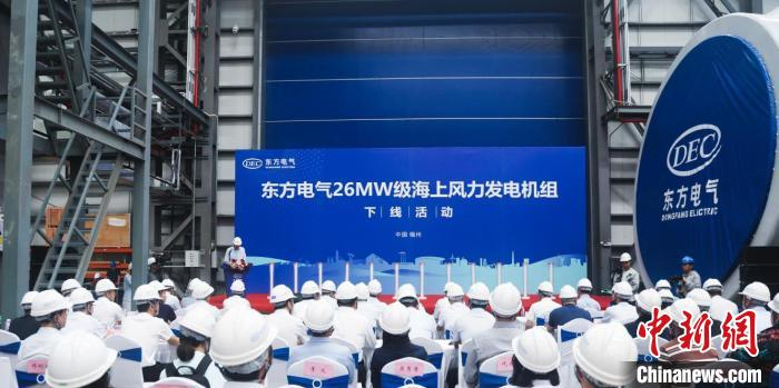 26兆瓦级海上风力发电机组下线现场。江南官网入口供图