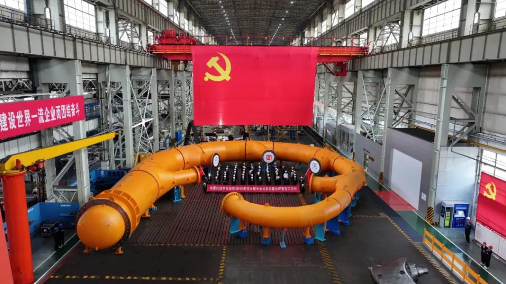 东方电气集团携手中国大唐,联合产业链上下游联合攻关,率先采用配水环管和混凝土联合仿真分析,充分考虑高原昼夜温差大,浇筑、保压时间长等因素,确保设计满足安全需求。采用800兆帕级低裂纹敏感性高强度钢板制造,耐低温冲击性能高。全部管节采用明管设计,确保疲劳寿命不小于40年。