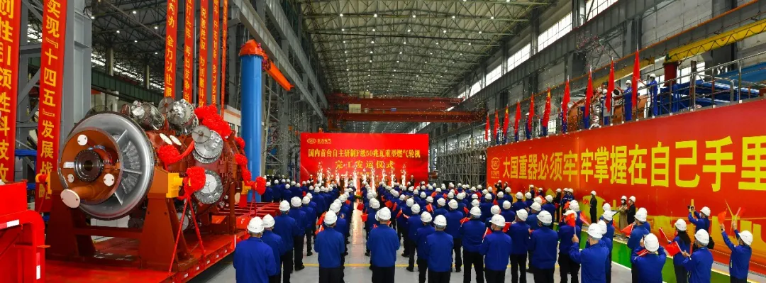 2022年11月25日,东方电气F级50兆瓦重型燃气轮机正式完工发运。2023年3月8日,东方电气F级50兆瓦重型燃气轮机在华电清远华侨工业园天然气分布式能源站顺利通过72+24小时试运行,标志着我国在自主重型燃气轮机领域完成了从“0”到“1”的突破。历时14年研制,填补了我国自主燃气轮机应用的空白,开启了我国自主燃气轮机高质量发展的新篇章。