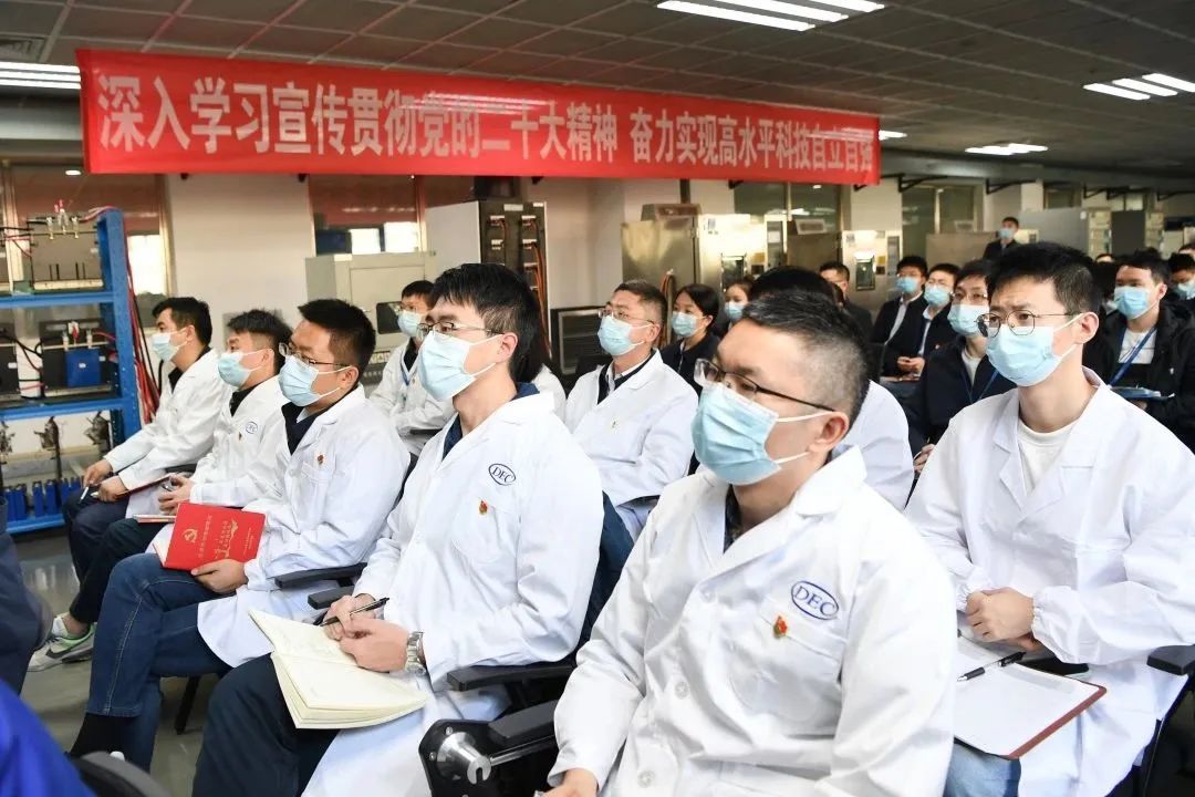 本网讯 为引导全集团广大干部职工切实把思想和行动统一到党的二十大精神上来,根据东方电气集团党组统一部署,11月22日,集团公司“高举伟大旗帜 凝聚奋进力量”党的二十大精神宣讲队首场宣讲报告会在东方研究院新能源电池测试实验室举行,用“行走的课堂”讲述“我们身边”拼搏奋进争先的鲜活故事,激励科研工作者以实干抢抓创新先机,为加快实现高水平科技自立自强贡献“东方”力量。