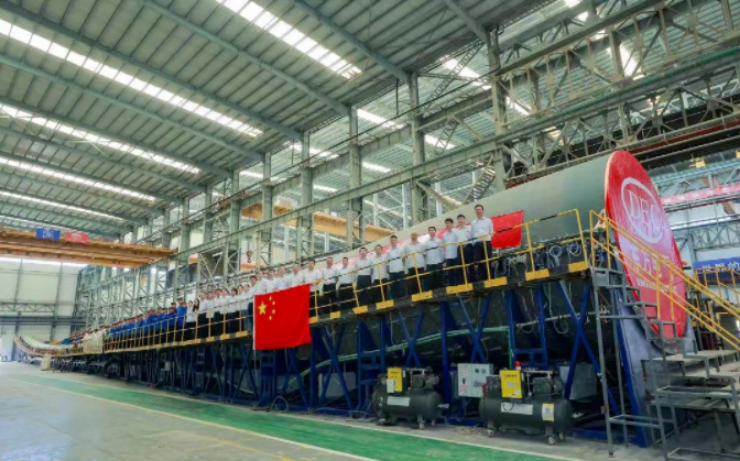 以“大鹏一日同风起,扶摇直上九万里”的冲劲,走出一条产业振兴之路,站上“百亿风电”新台阶。2015年3月,东方电气集团风电产业一体化专业子公司——东方风电正式成立,但是历史“包袱”让企业开局艰难。2016年,集团公司把“打好风电产业振兴攻坚战”作为三大攻坚战的首要战役,多措并举推动风电产业高质量发展。在集团公司党组坚强领导下,东方风电制定并实施为期八年的“三步走”振兴路径。全体干部职工抢抓机遇,奋勇拼搏,在2018年实现脱困,触底反弹,2019年装机排名进入全球前十、行业前五,2021年站上“百亿风电”新台阶,2022年1-9月市场份额排名国内第五,持续保持向上的发展态势。