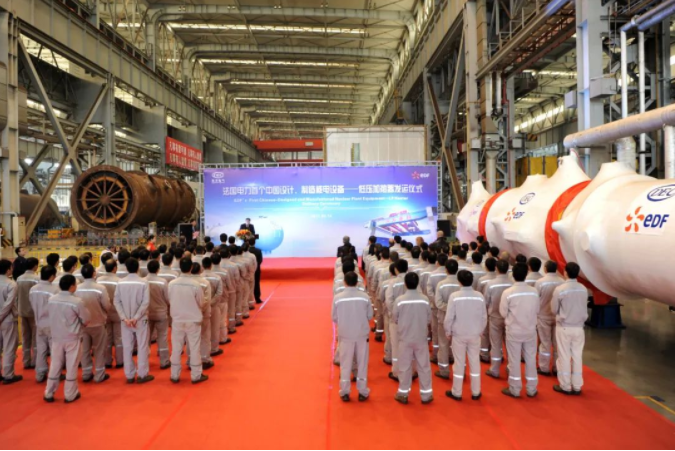 2017年2月14日,在东方电气核电装备制造和出海口基地,中国首台出口欧洲的核电低压加热器发运。这是法国电力集团实施核电全球化战略采购后的第一个投向中国的采购订单,东方电气集团通过该项目掌握了欧洲压力容器指令及标准,成为法国电力集团在中国确立的首家核电产品合格供应商,这也是中国核电走向欧洲市场的重要标志。此外,东方电气集团积极配合中核、中广核、国家电投等企业集团,以精益制造、优质服务及诚信透明的核安全文化等优势推进中国核电“走出去”。