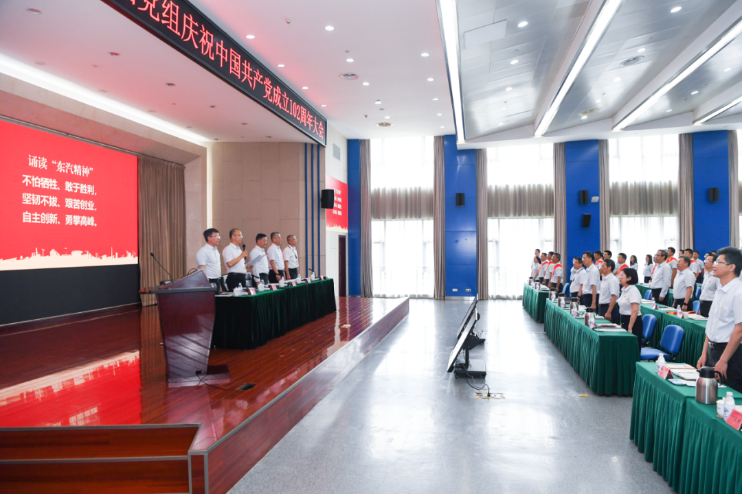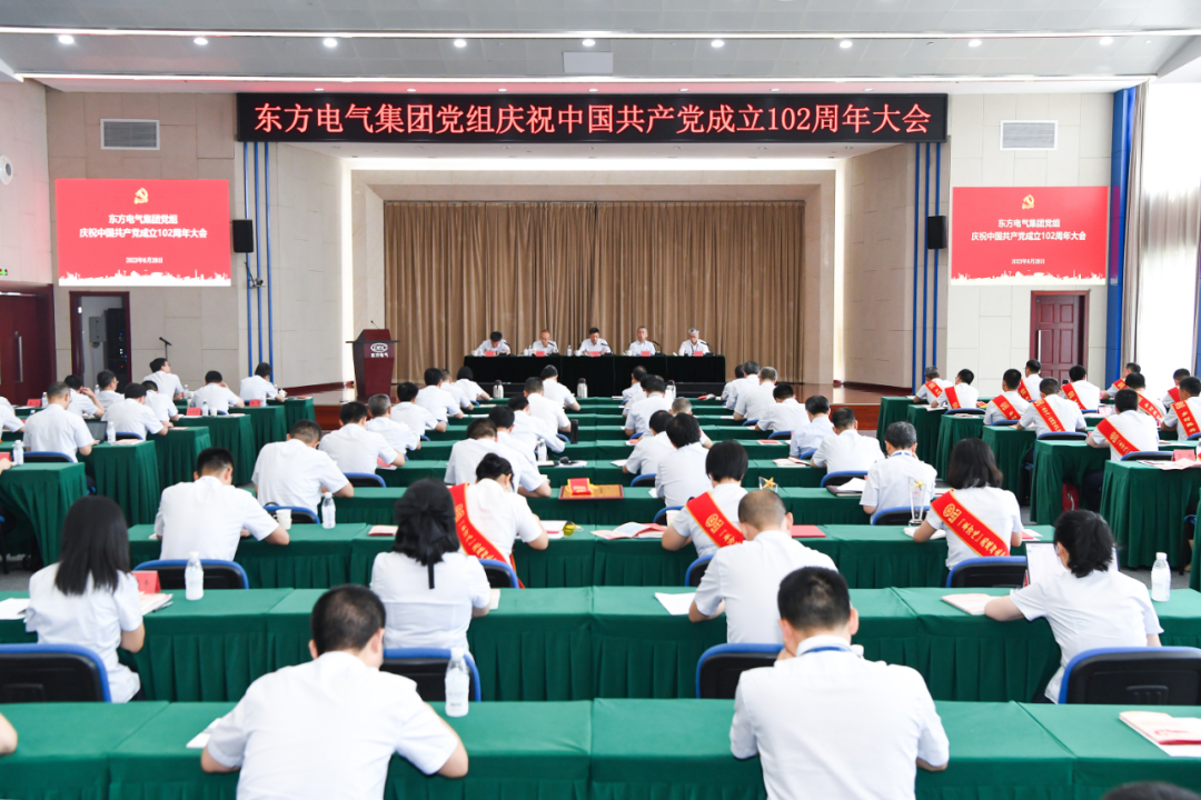 6月28日下午,在嘹亮的国歌声中,东方电气集团党组召开庆祝中国共产党成立102周年大会,通过回顾党的光荣历史、重温入党誓词、表彰先进,激励和动员全体党员干部职工更加紧密地团结在以习近平同志为核心的党中央周围,推进集团公司高质量发展,全力书写以中国式现代化全面推进中华民族伟大复兴的东方电气篇章。集团公司领导俞培根、刘智全、袁明刚、张彦军、李忠军出席会议。