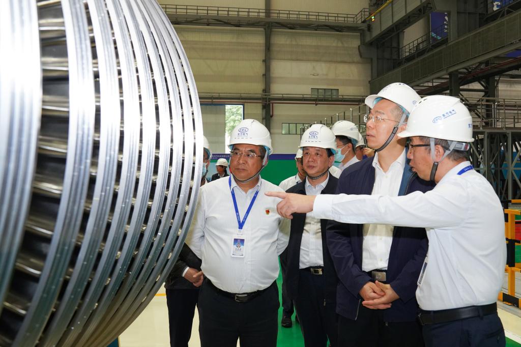 谭作钧一行深入东方电气集团德阳生产制造基地,到所属东方汽轮机、东方电机的全国重点实验室、叶片加工黑灯产线、汽轮机数字化总装车间、大型清洁能源装备重型制造数字化车间、东电印迹、劳模大师创新工作室、党员活动室等基层一线调研。在中国“争气机”整机试验台前,谭作钧高度肯定14年来F级50兆瓦重型燃机的自主创新成果,勉励青年科研工作者传承好“东汽精神”,在勇攀科技的高峰插上东方电气的旗帜。