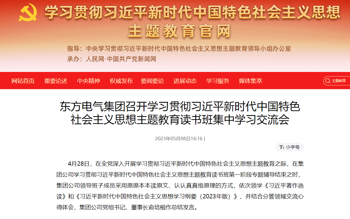 4月28日,在全党深入开展学习贯彻习近平新时代中国特色社会主义思想主题教育之际,在集团公司学习贯彻习近平新时代中国特色社会主义思想主题教育读书班第一阶段专题辅导结束之时,集团公司领导班子成员采用原原本本读原文、认认真真悟原理的方式,依次领学《习近平著作选读》和《习近平新时代中国特色社会主义思想学习纲要(2023年版)》,并结合分管领域交流心得体会,集团公司党组书记、董事长俞培根作总结发言。
