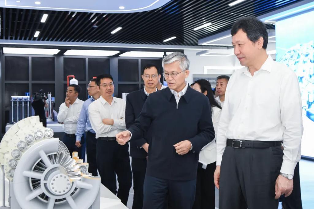 在张彦军的陪同下,靳国卫一行参观了东方电气科技展示厅,深入了解了东方电气集团的发展历程、产业格局、装备制造、绿色低碳发展等情况。