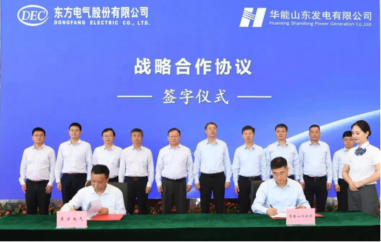 座谈后,双方签署了战略合作协议。东方电气股份有限公司副总裁但军,华能山东党委委员、副总经理史本天代表双方进行签约。