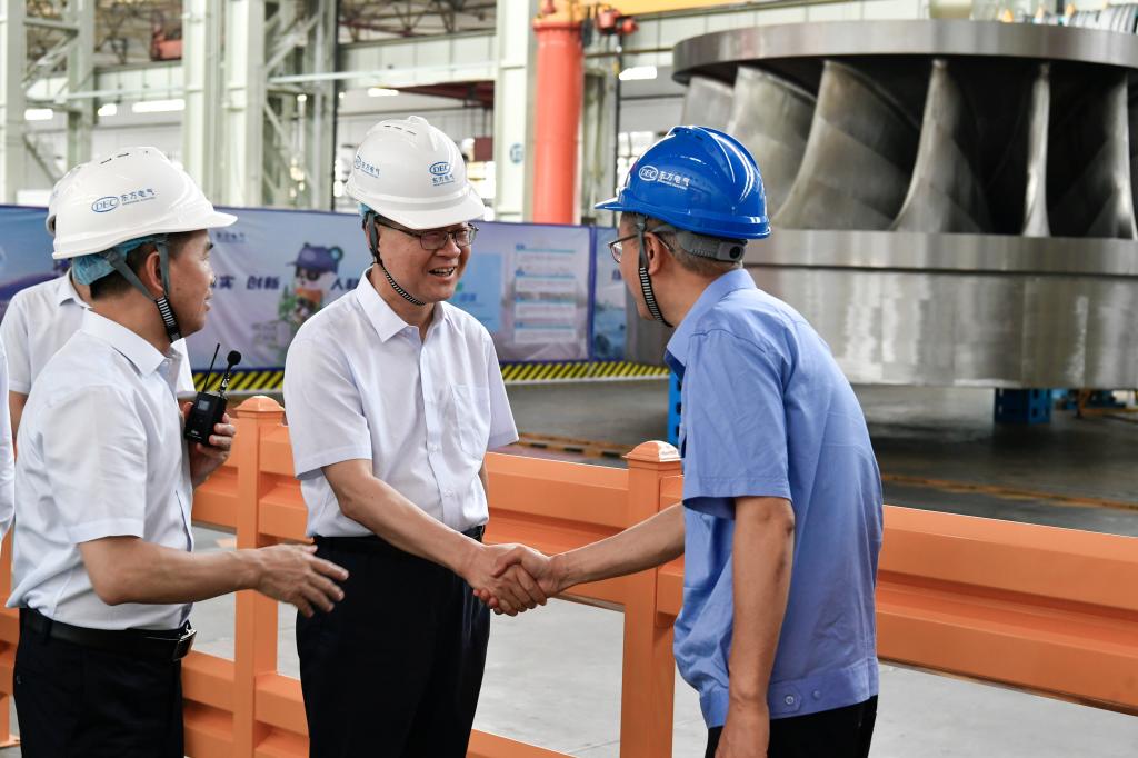 6月13日,东方电气集团党组书记、董事长罗乾宜到东方电机调研,并看望慰问一线干部职工。
