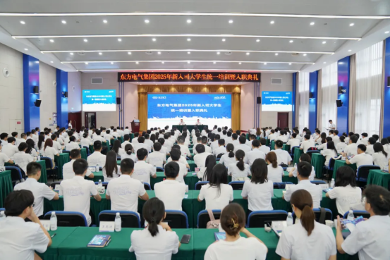 7月7日,东方电气集团举行2025年新入司大学生统一培训暨入职典礼,来自200余所高校的1100余名高校毕业生带着朝气、带着活力齐聚东方电气,一起共绘美好蓝图。东方电气集团董事、党组副书记张少峰出席典礼并对新员工提出殷切希望。