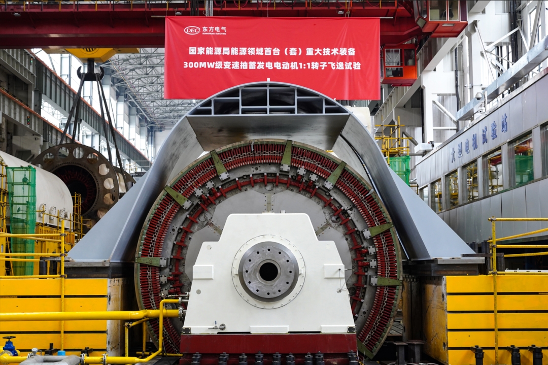 本网讯8月16日上午,国家能源局能源领域首台(套)重大技术装备项目——300兆瓦级变速抽水蓄能机组发电电动机1:1转子,在东方电气集团东方电机有限公司顺利通过飞逸试验,动态稳定性、可靠性等得到充分验证,标志着我国变速抽水蓄能机组自主研制取得重大突破!该转子创新采用端部整体护环固定结构,应用新型转子绕组接线方法,开发超大直径非...